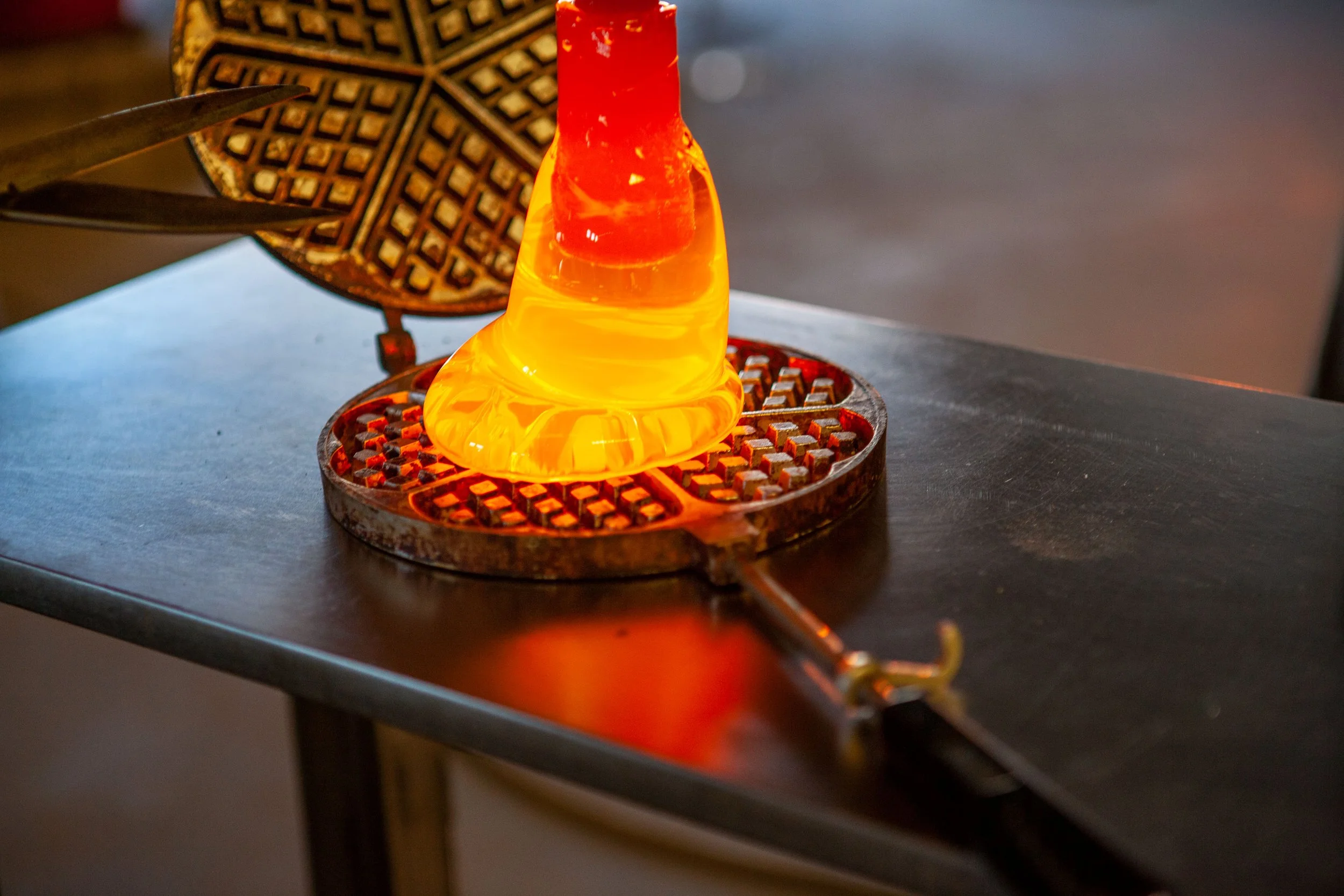 Made by pressing 2,100ºF molten glass in a Scandinavian vintage waffle iron. Now available for orders and we ship everywhere. Comes wrapped in a box with our AO Glass card.